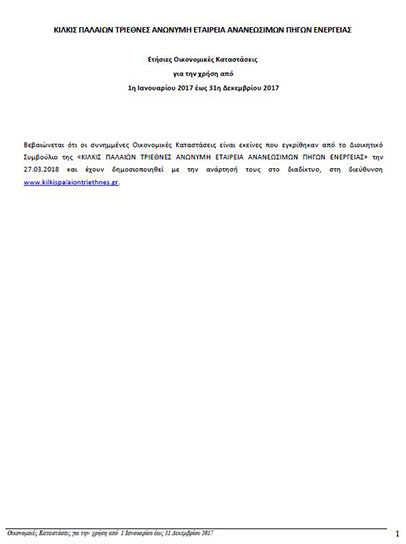 Για να κατεβάσετε τις Χρηματοοικονομικές Καταστάσεις του 2017 πατήστε εδώ