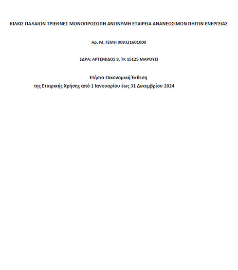 ΚΙΛΚΙΣ ΠΑΛΑΙΩΝ ΤΡΙΕΘΝΕΣ ΜΟΝΟΠΡΟΣΩΠΗ ΑΝΩΝΥΜΗ ΕΤΑΙΡΕΙΑ ΑΝΑΝΕΩΣΙΜΩΝ ΠΗΓΩΝ ΕΝΕΡΓΕΙΑΣ